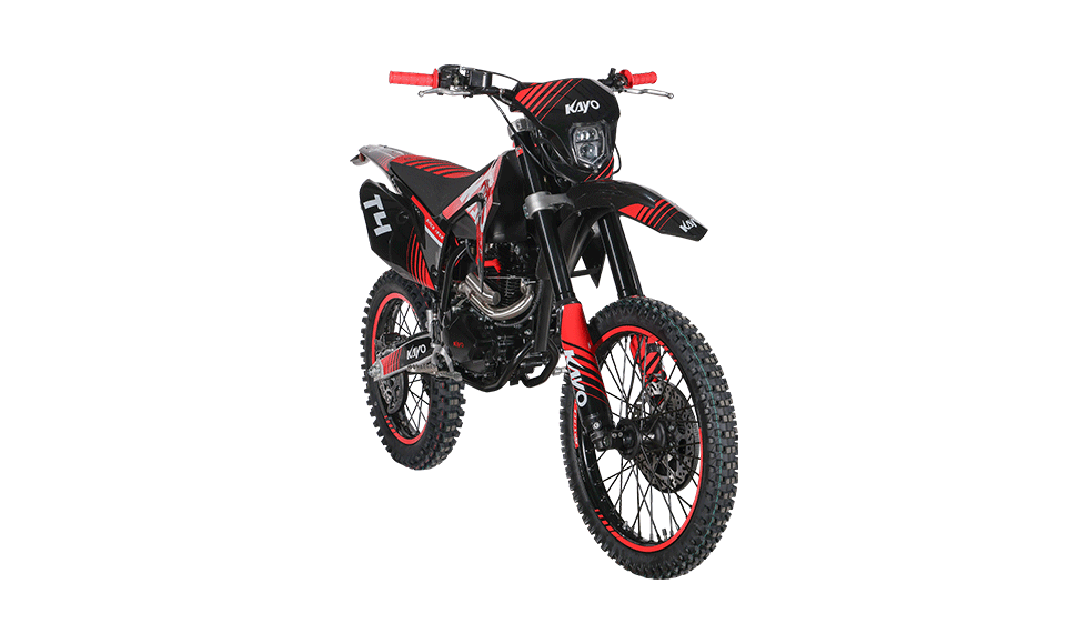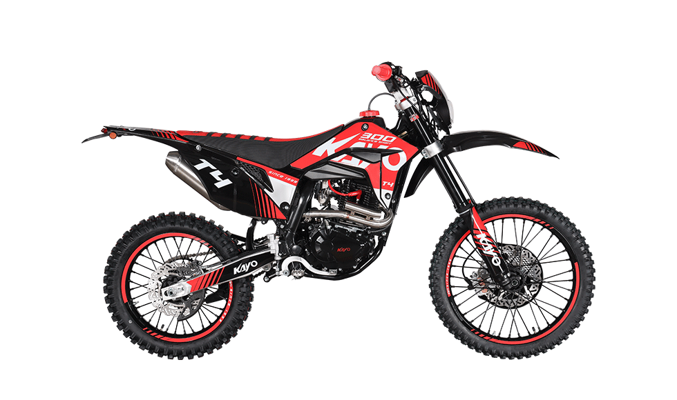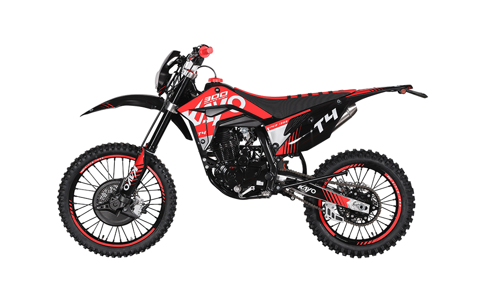 KAYO T4 300 este alegerea potrivită pentru riderii care își doresc mai mult cuplu și stabilitate pe trasee lungi. Cu motor 4T ~300cc, cutie în 5 trepte și roți 21/18, T4 300 oferă tracțiune excelentă, suspensii capabile și frâne hidraulice puternice. Pornirea electrică + kick-start și întreținerea simplă o fac ideală pentru ture, antrenamente și explorarea de terenuri variate – de la poteci forestiere la urcări tehnice.