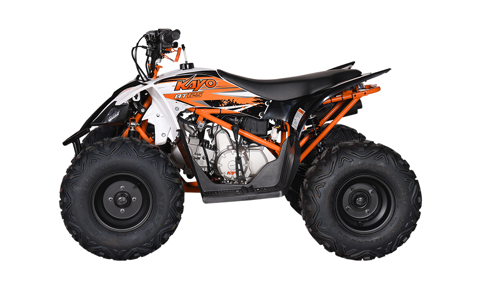 KAYO AT125 este ATV-ul sport creat pentru cei care vor un pas în plus față de modelele pentru începători. Cu motor în 4 timpi de 125cc, transmisie complet automată și pornire electrică, AT125 oferă accelerații line, poziție comodă și manevrabilitate sigură pe iarbă, pietriș sau poteci ușoare. Șasiul compact, anvelopele late și frânele pe disc inspiră încredere la fiecare tură, fie pentru joacă, fie pentru deplasări scurte în spații private.